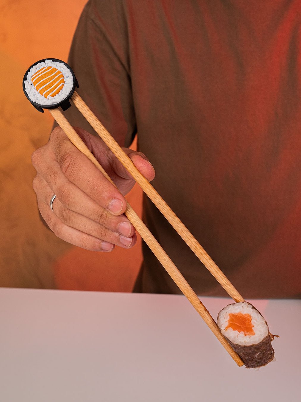 • Design inspirado em um rolinho de sushi, divertido e minimalista.